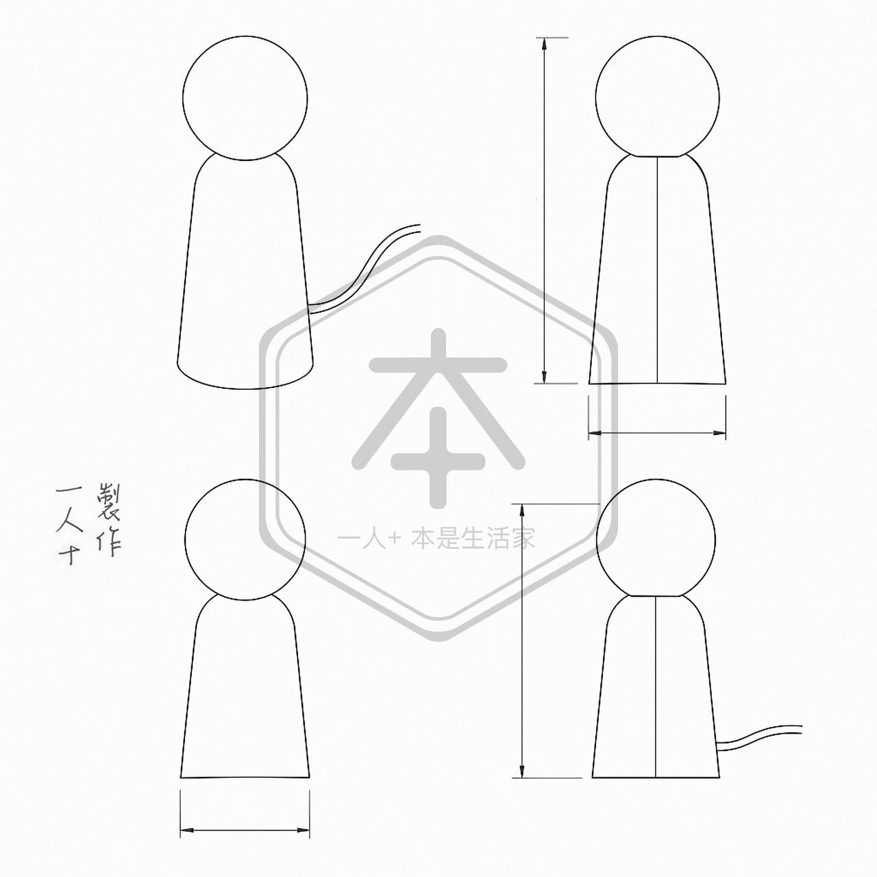 - 標準:W10cm x H22+8cm,1.4m復古編織電源線附日式按鈕開關