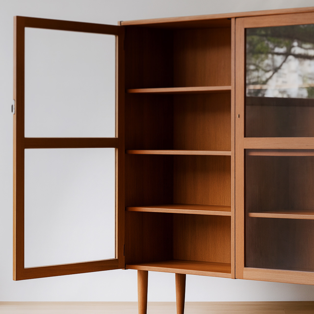 這是一款收藏溫馨回憶,融合客廳、廚房與任意空間的原木玻璃滑門收納櫃。