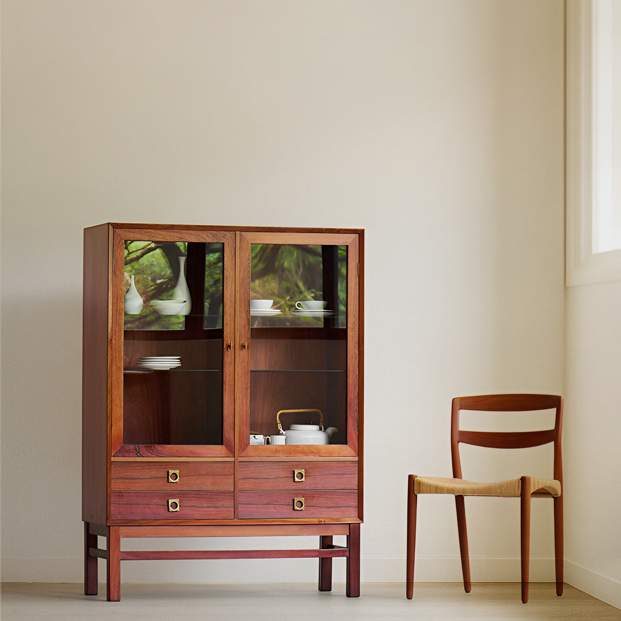- 材質:北美櫻桃木,強化玻璃